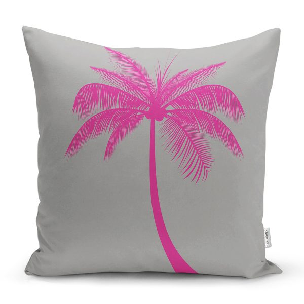 Gri Zeminde Fuşya Palmiye Motifli Modern Kırlent Kılıfı