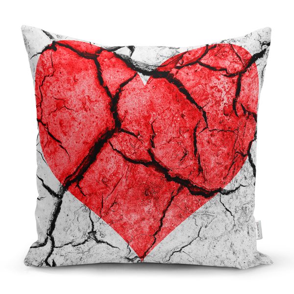 Kalp Desenli Dijital Baskılı Dekoratif Yastık Kırlent Kılıfı