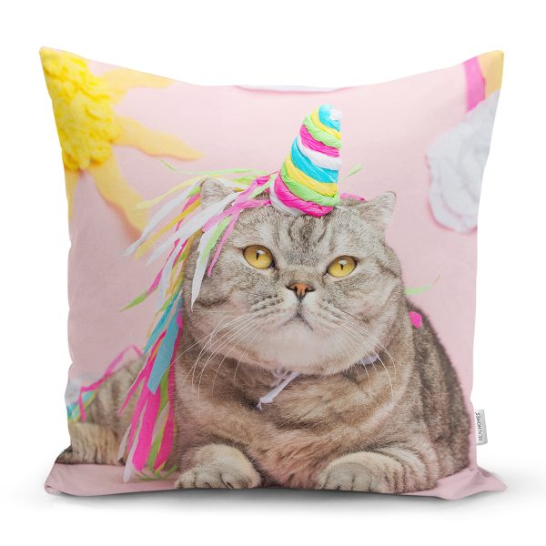 Sevimli Kedi Desenli Dijital Baskılı Modern Yastık Kırlent Kılıfı