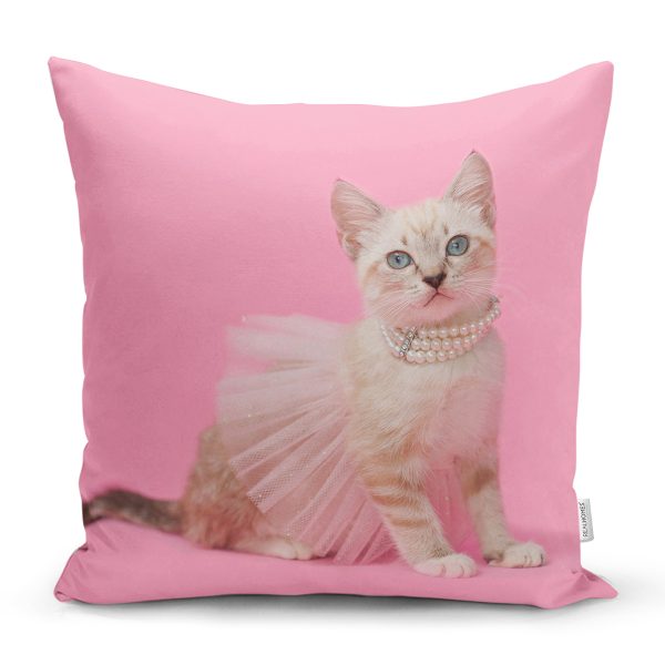 Pembe Etekli Kedicik Motifli Modern Yastık Kırlent Kılıfı