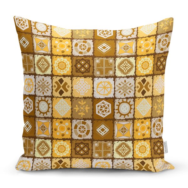 Damalı Karmaşık Şekiller Desenli Dijital Baskılı Dekoratif Yastık Kırlent Kılıfı
