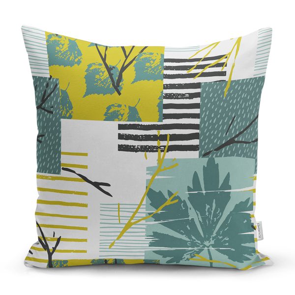 Yaprak Ve Geometrik Desenli Dijital Baskılı Dekoratif Yastık Kırlent Kılıfı