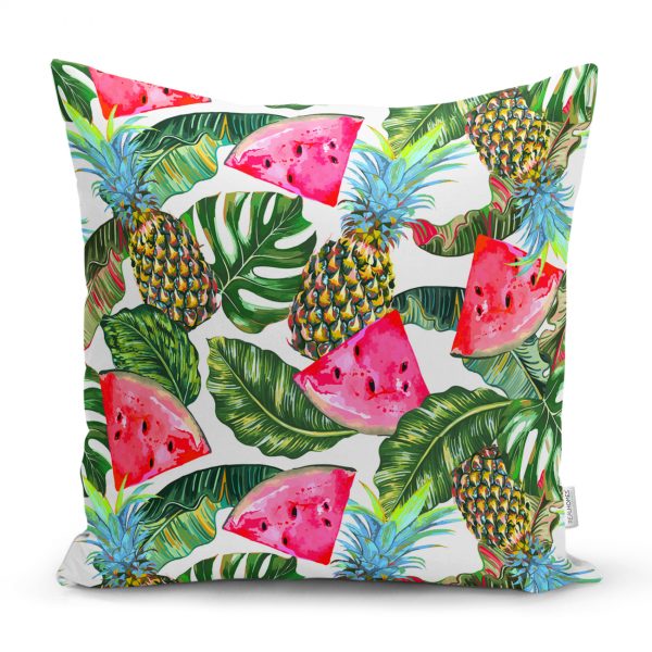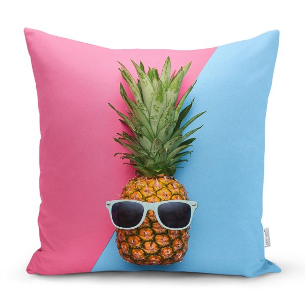 Canlı Renkli Ananas Motifli Dijital Baskılı Dikdörtgen Yastık Kırlent Kılıfı