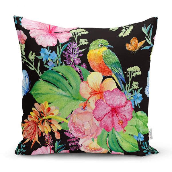Çift Taraflı Siyah Zeminde Çiçek Bahçesi Exclusive Modern Tasarımlı Süet Kırlent Kılıfı