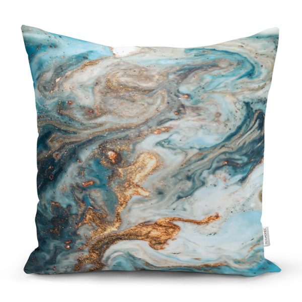 Realhomes Mavi Suluboya Desenli Dijital Baskılı Modern Yastık Kırlent Kılıfı