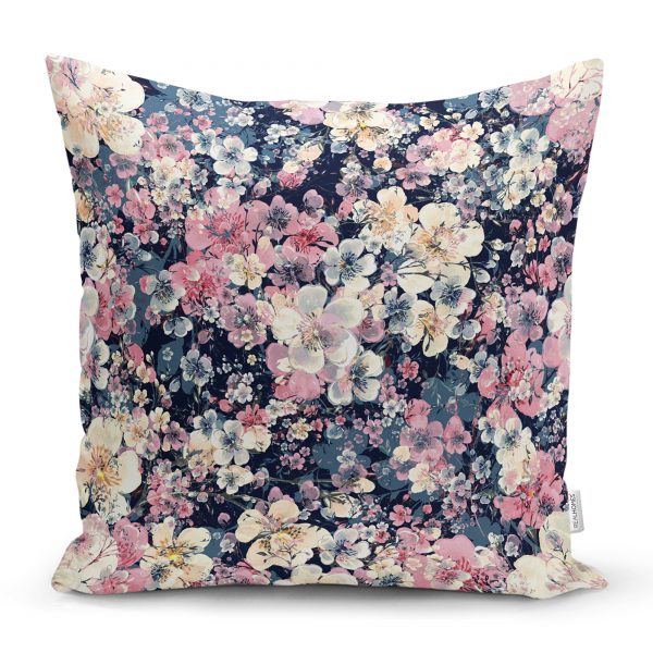Çift Taraflı Çiçek Demeti Dijital Baskılı Dekoratif Süet Yastık Kırlent Kılıfı