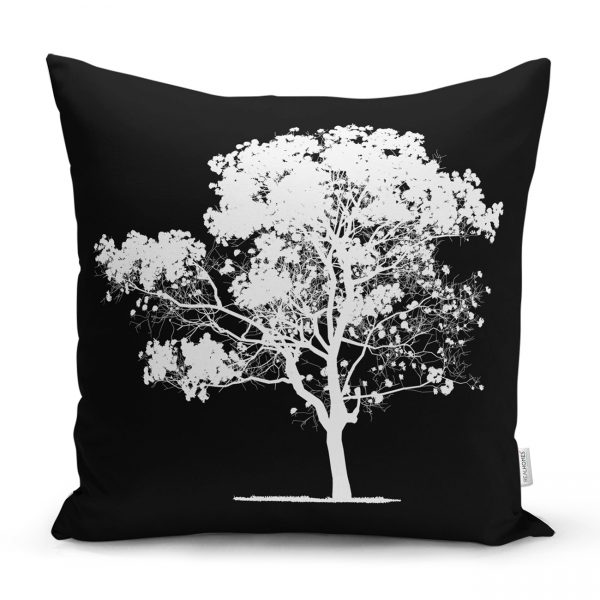 Siyah Beyaz Ağaç Tasarımlı Dijital Baskılı Kırlent Kılıfı