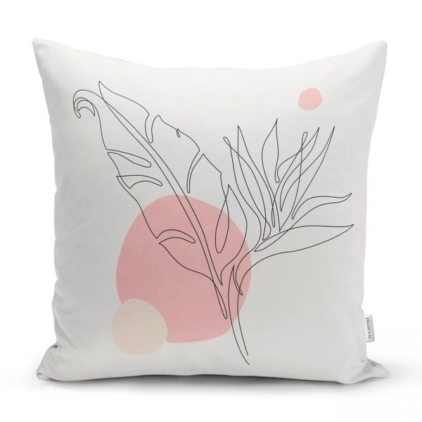 Pembe Zemin Üzerinde Soyut Çizim Tasarımlı Modern Dijital Baskılı 4’lü Yastık Kırlent Kılıf Seti