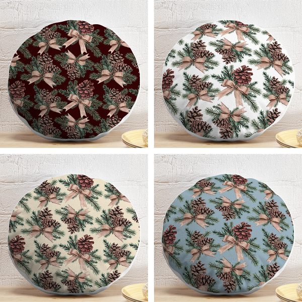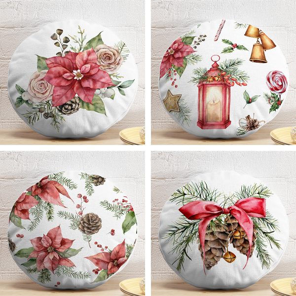 4’lü Gül & Kozalak Özel Tasarımlı Dijital Baskılı Modern Yuvarlak Yastık Kırlent Kılıf Seti