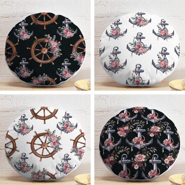 4’lü Çapa & Dümen Özel Tasarımlı Dijital Baskılı Modern Yuvarlak Yastık Kırlent Kılıf Seti