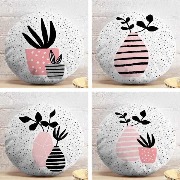 4’lü Saksıdaki Çiçekler Özel Tasarım Dijital Baskılı Modern Yuvarlak Yastık Kırlent Kılıf Seti