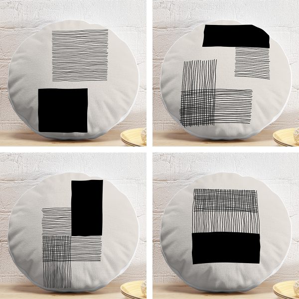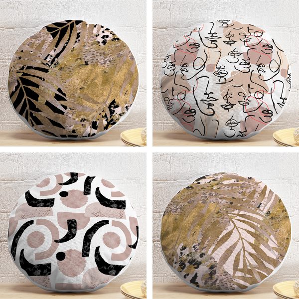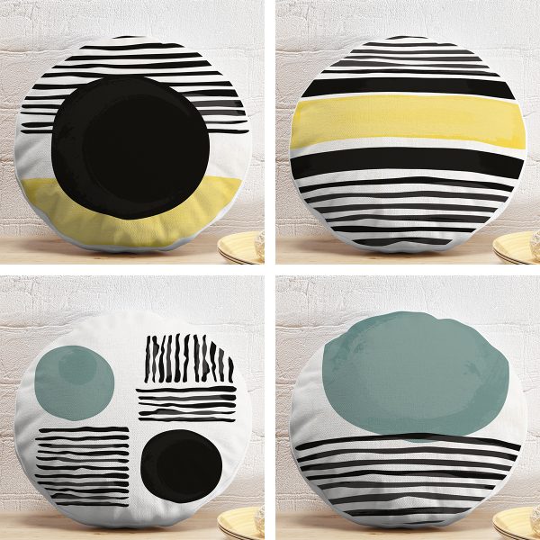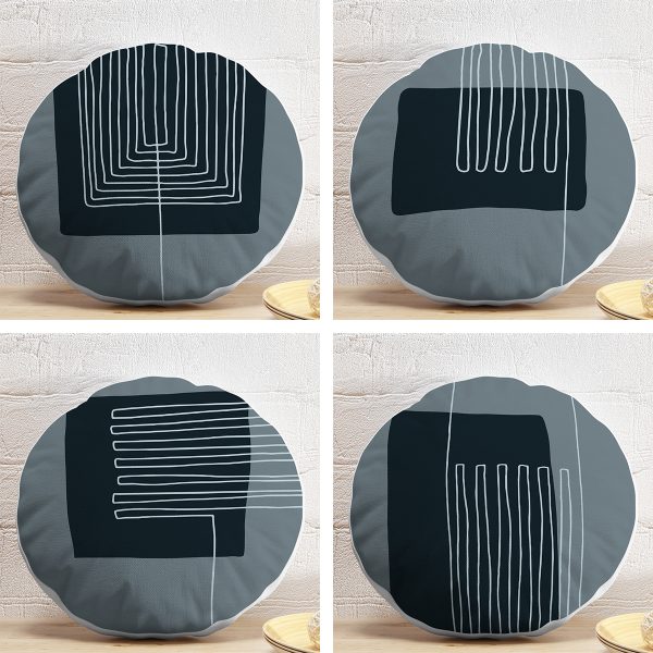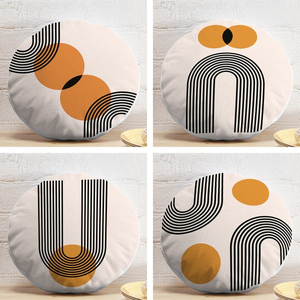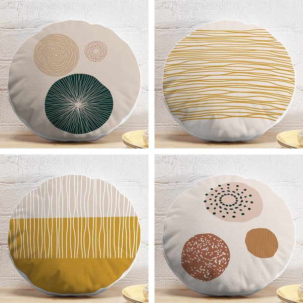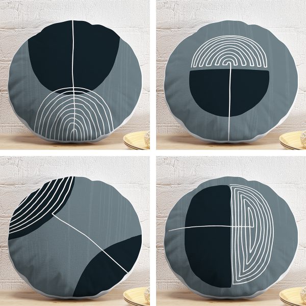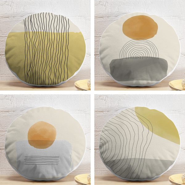 4’lü Geometrik Çizimli Soyut Tasarımlı Dijital Baskılı Modern Yuvarlak Yastık Kırlent Kılıf Seti