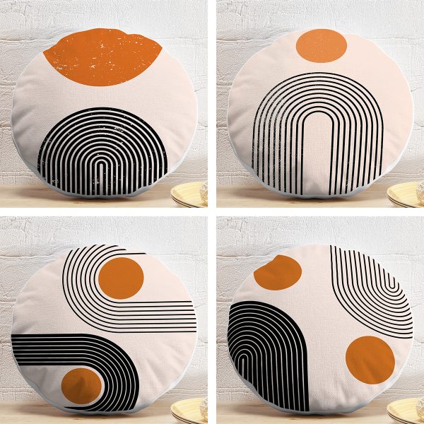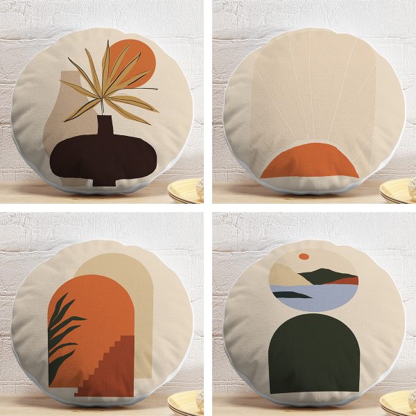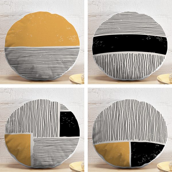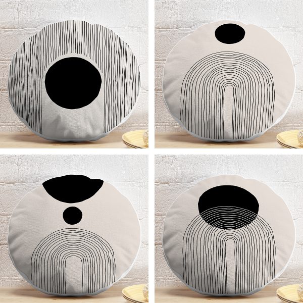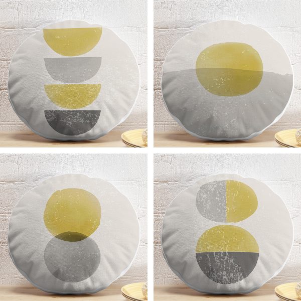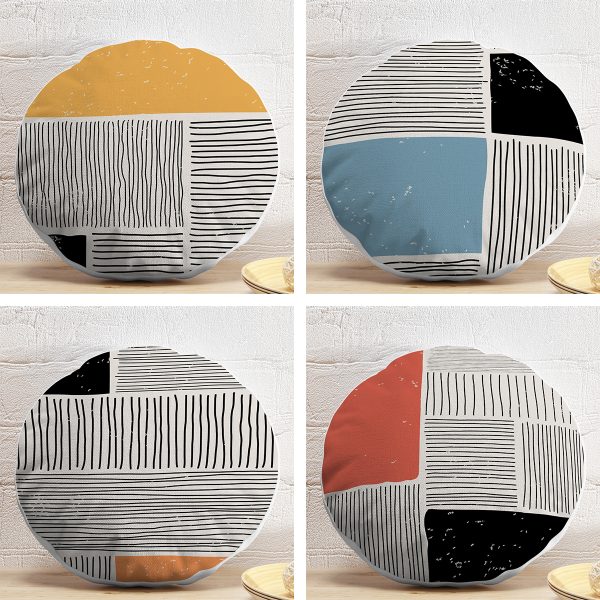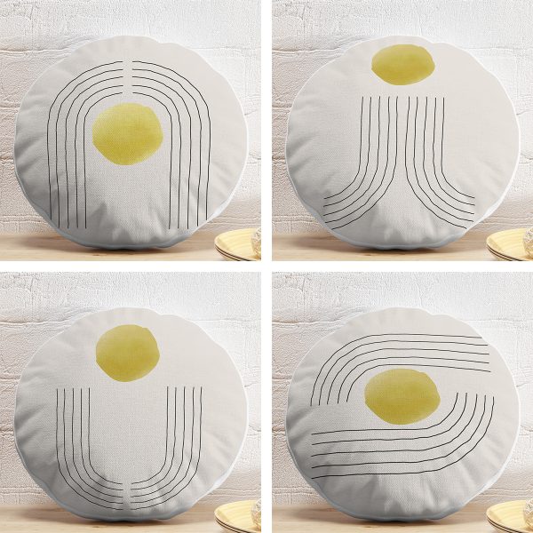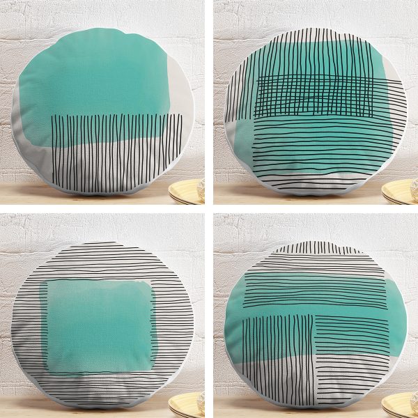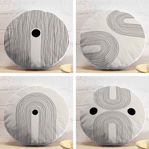 4’lü Geometrik Çizimli Soyut Tasarımlı Dijital Baskılı Modern Yuvarlak Yastık Kırlent Kılıf Seti
