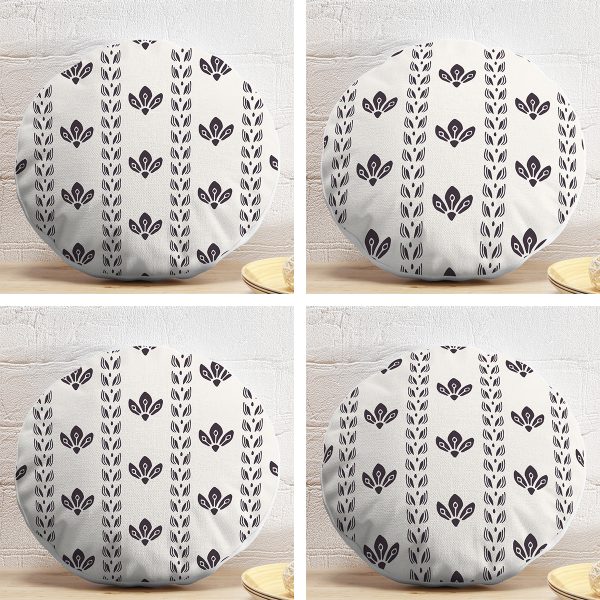 4’lü Koyu Fildişi Renkli Çizgi Tasarımlı Dijital Baskılı Modern Yuvarlak Yastık Kırlent Kılıf Seti