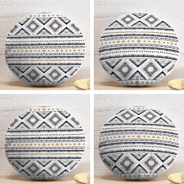 4’lü Çizgili Etnik İskandinav Tasarımlı Dijital Baskılı Modern Yuvarlak Yastık Kırlent Kılıf Seti