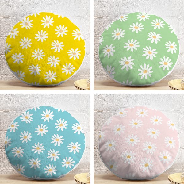 4’lü Renkli Zemin Papatya Tasarımlı Dijital Baskılı Modern Yuvarlak Yastık Kırlent Kılıf Seti