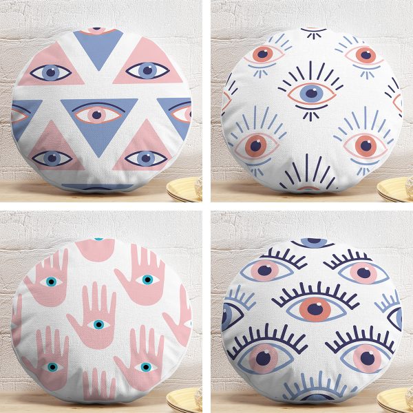 4’lü Üçüncü Göz Özel Tasarımlı Dijital Baskılı Modern Yuvarlak Yastık Kırlent Kılıf Seti