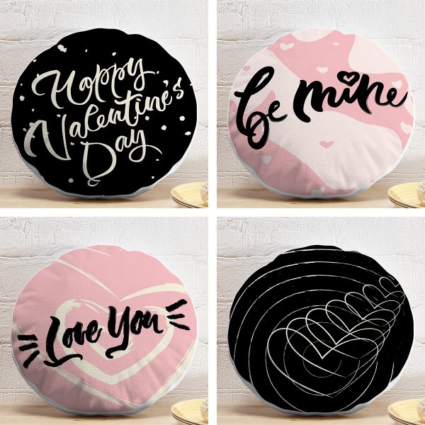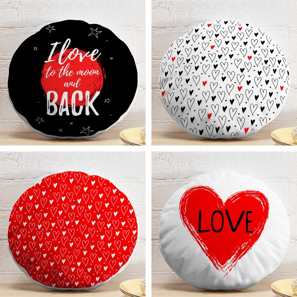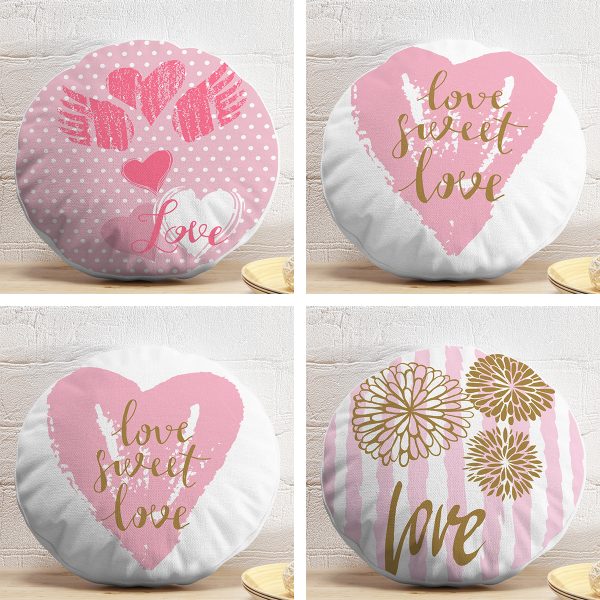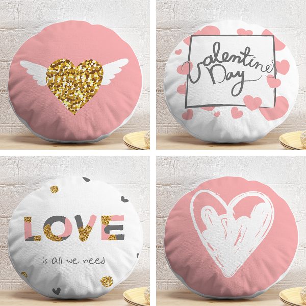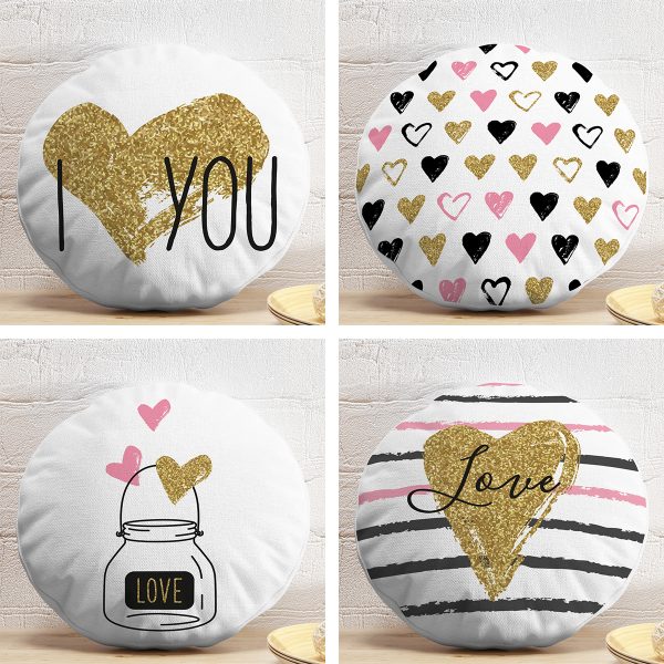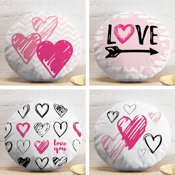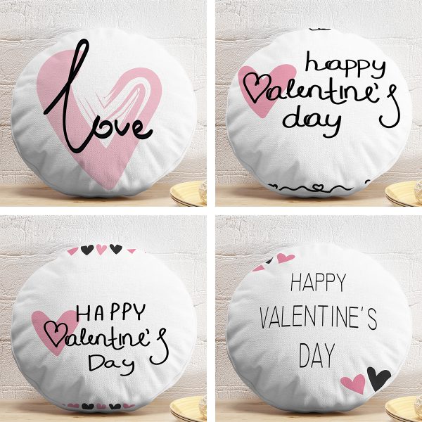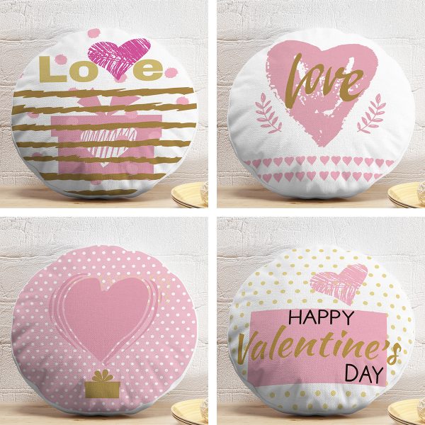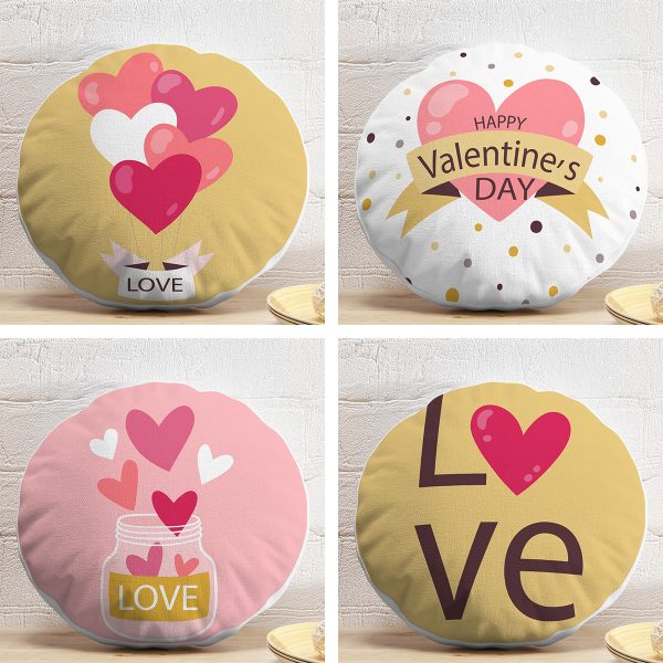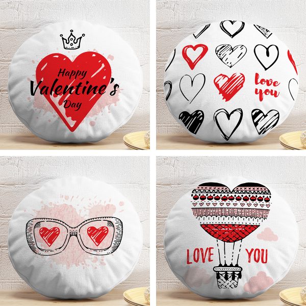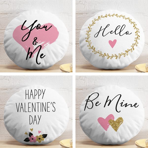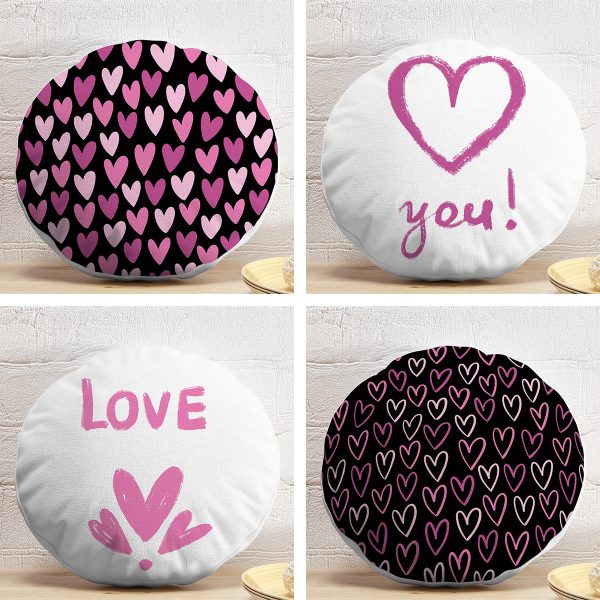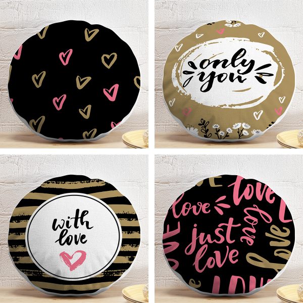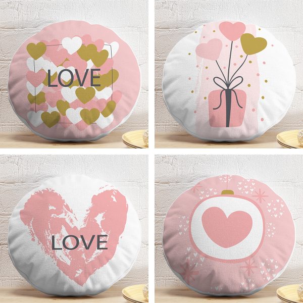 4’lü Sevgililer Günü Konseptli Özel Tasarım Modern Kombin Yuvarlak Yastık Kırlent Kılıf Seti
