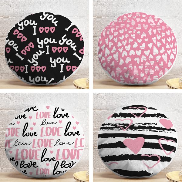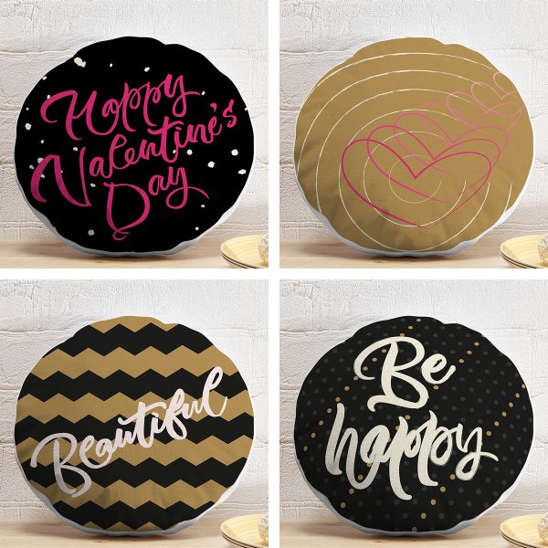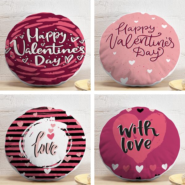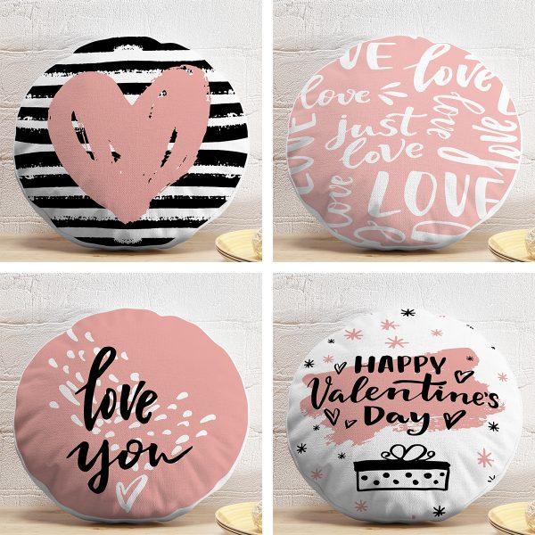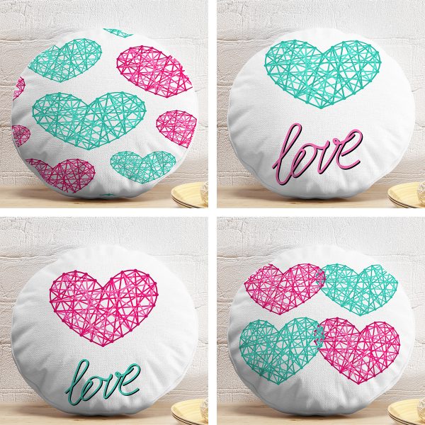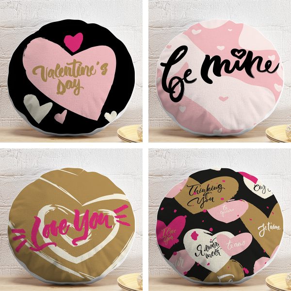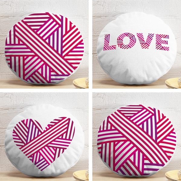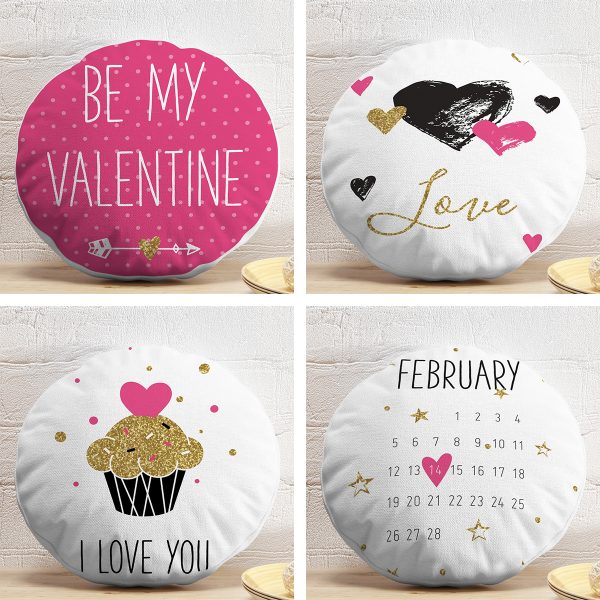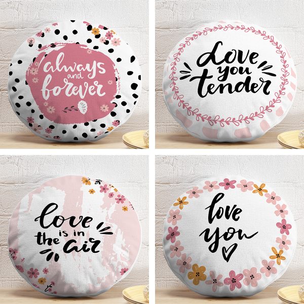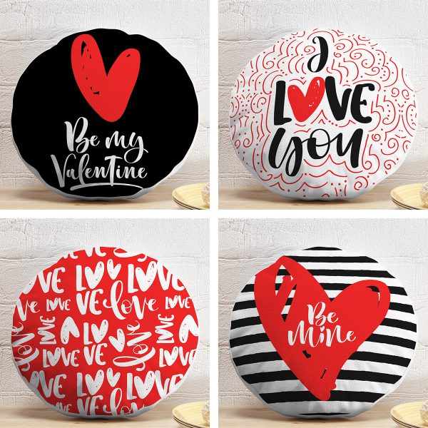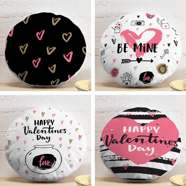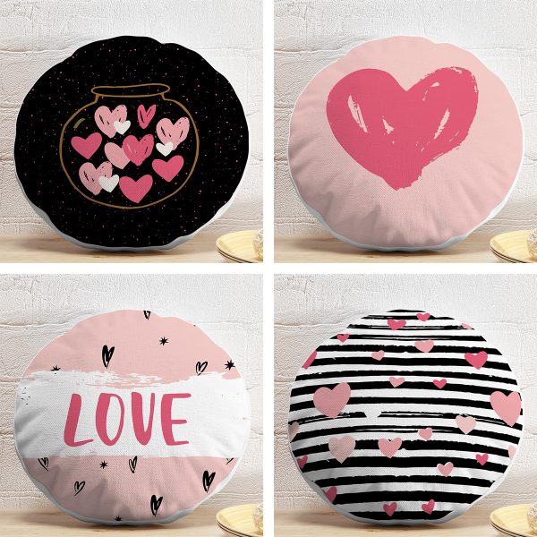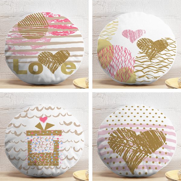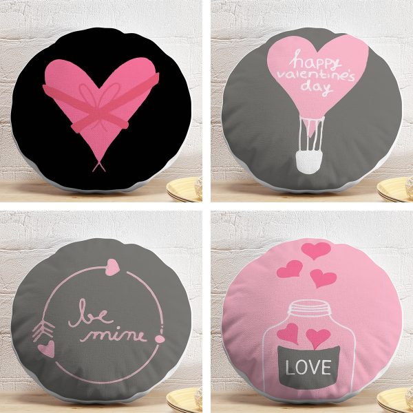 4’lü Sevgililer Günü Konseptli Özel Tasarım Modern Kombin Yuvarlak Yastık Kırlent Kılıf Seti