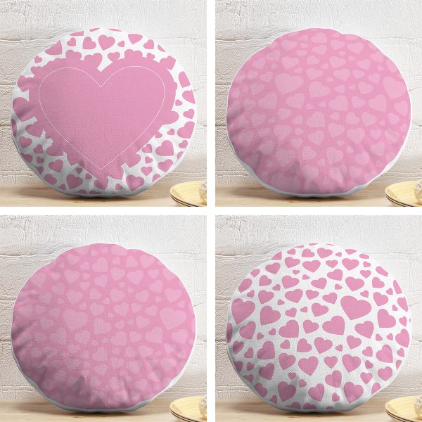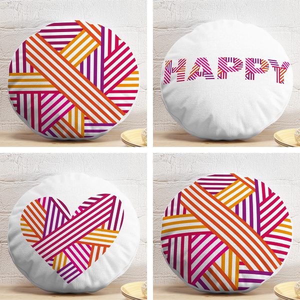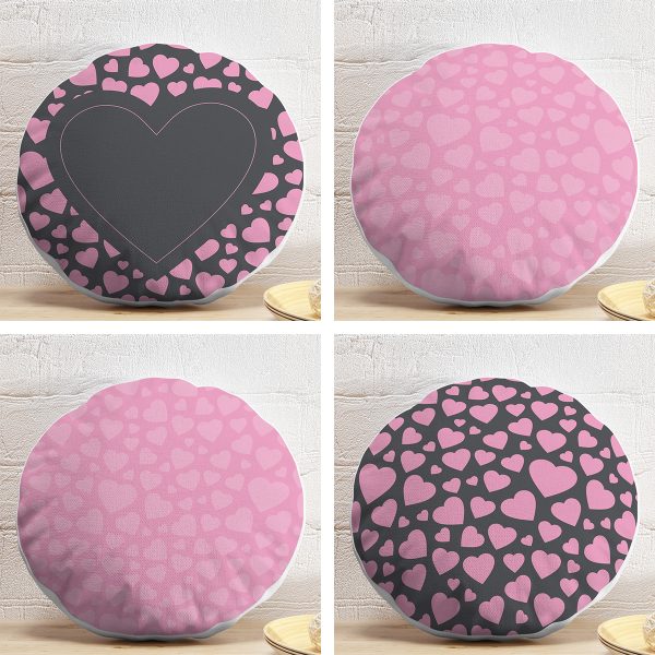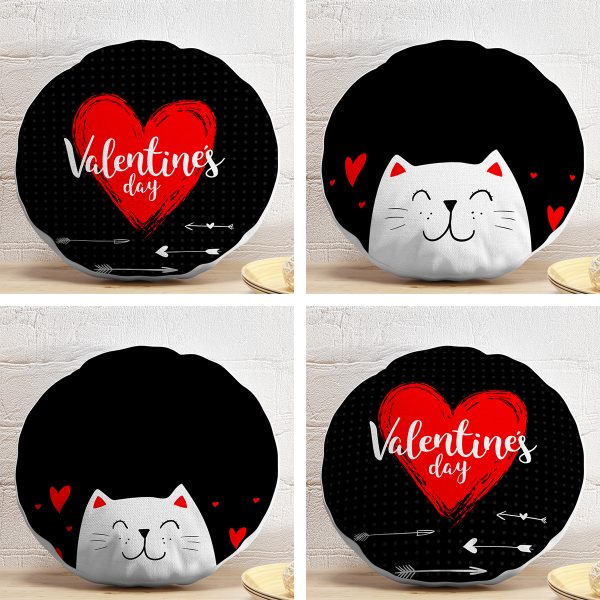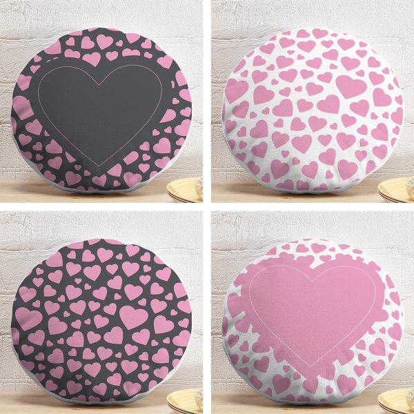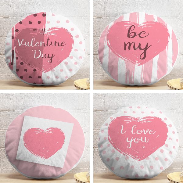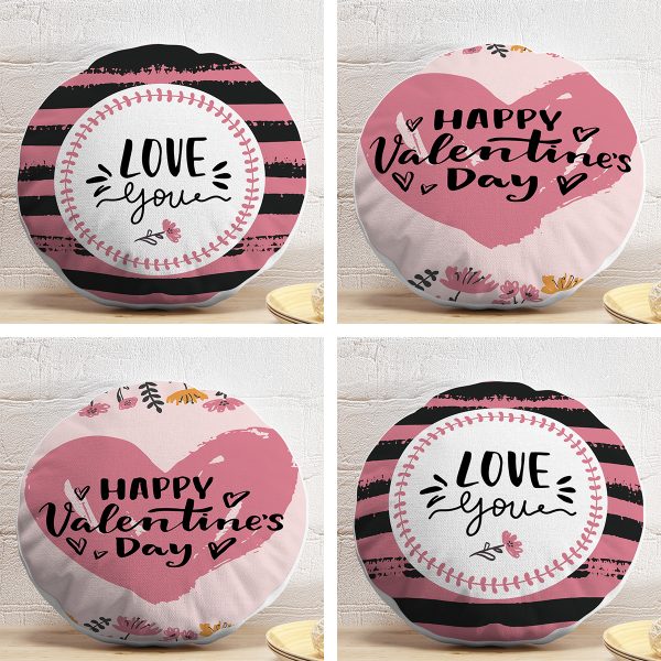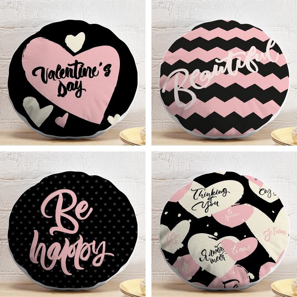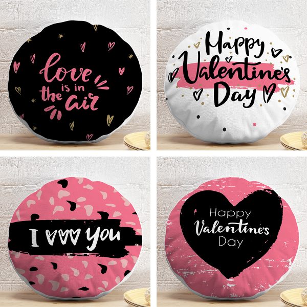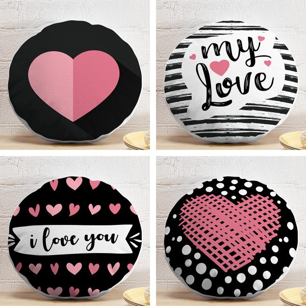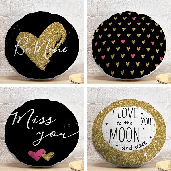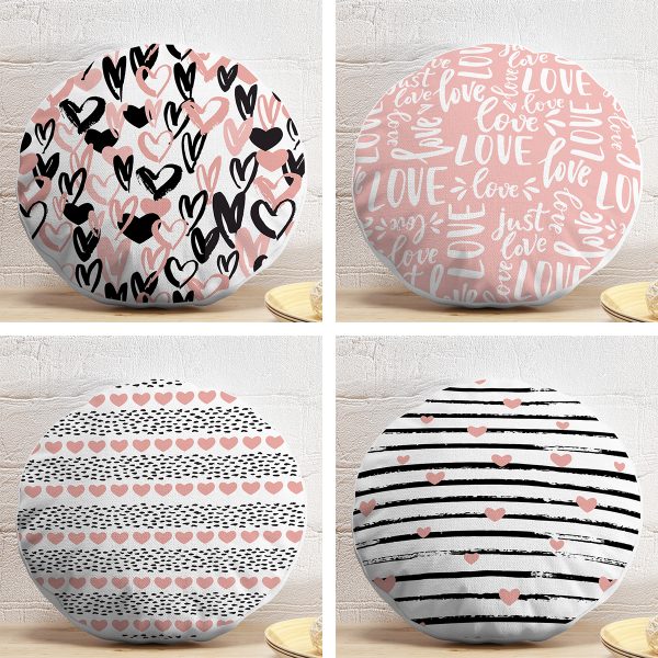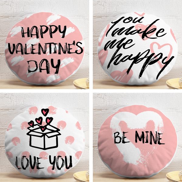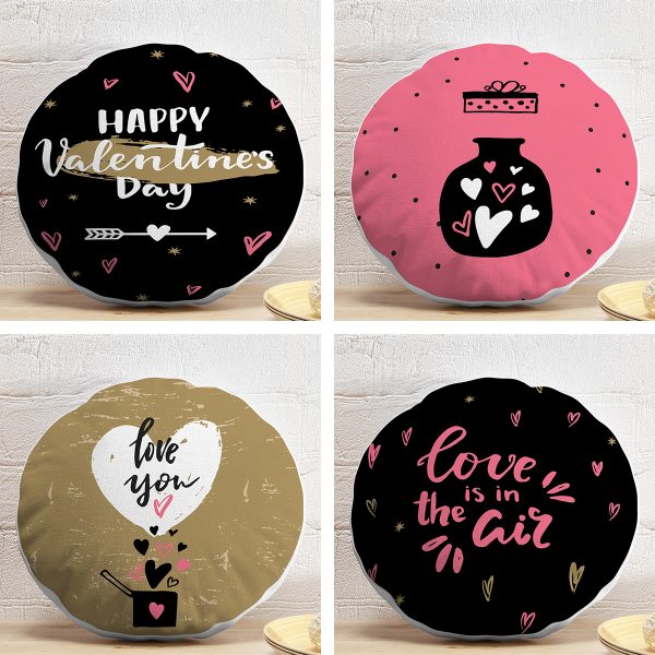4’lü Sevgililer Günü Konseptli Özel Tasarım Modern Kombin Yuvarlak Yastık Kırlent Kılıf Seti