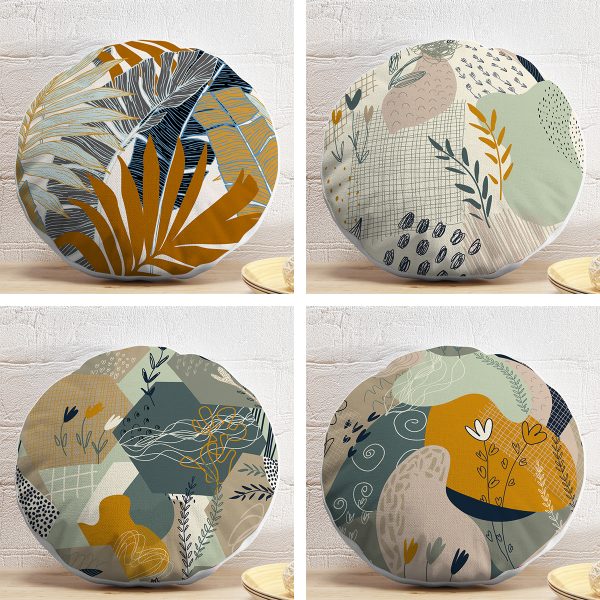 4’lü Soyut Çizimler Motifli Dijital Baskılı Dekoratif Yuvarlak Yastık Kırlent Kılıf Seti
