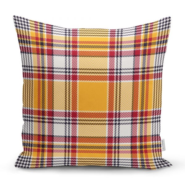 Modern Tasarımlı Ekose Geometrik Dijital Baskılı Yastık Kırlent Kılıfı