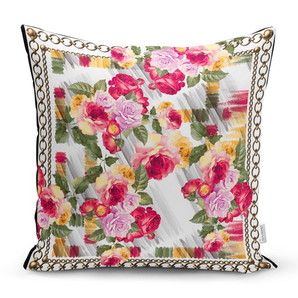 Realhomes Beyaz Zeminli Rengarenk Çiçekler Dijital Baskılı Modern Yastık Kılıfı