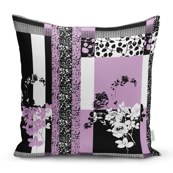 Mor Çizgi ve Siyahın Uyumu Tasarımlı Yastık Kırlent Kılıfı