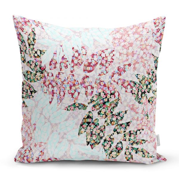 Geometrik Zeminde Yaprakların Uyumu Dijital Baskılı Yastık Kırlent Kılıfı