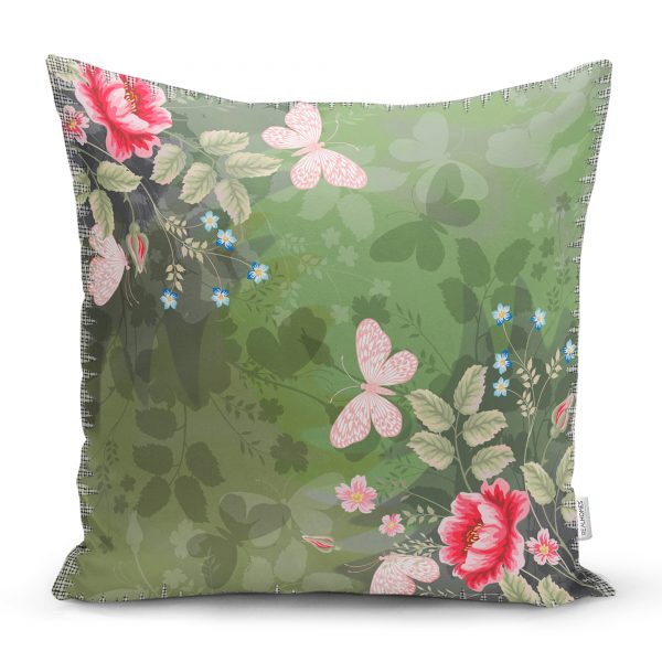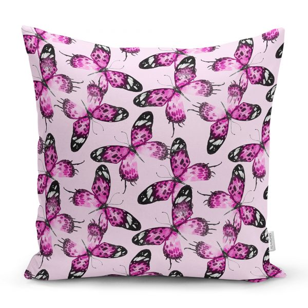 Realhomes Mor Kelebek Motifli Dijital Baskılı Modern Yastık Kırlent Kılıfı