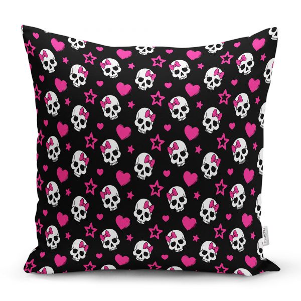 Pembe Zeminli Pink Yazılı Dekoratif Dikdörtgen Yastık Kırlent Kılıfı