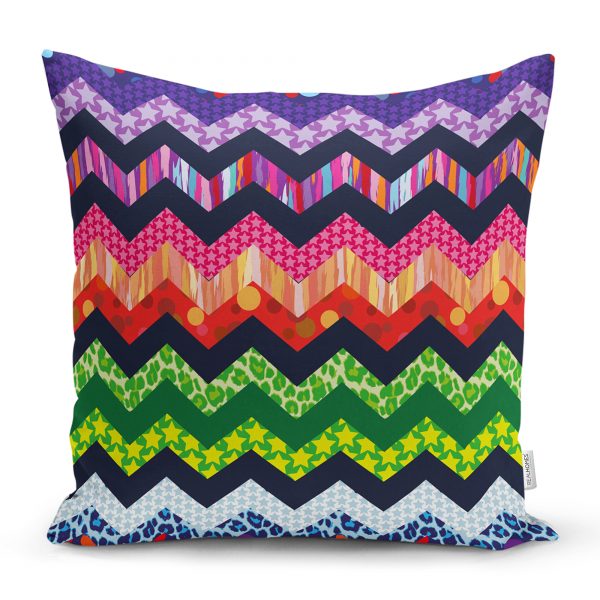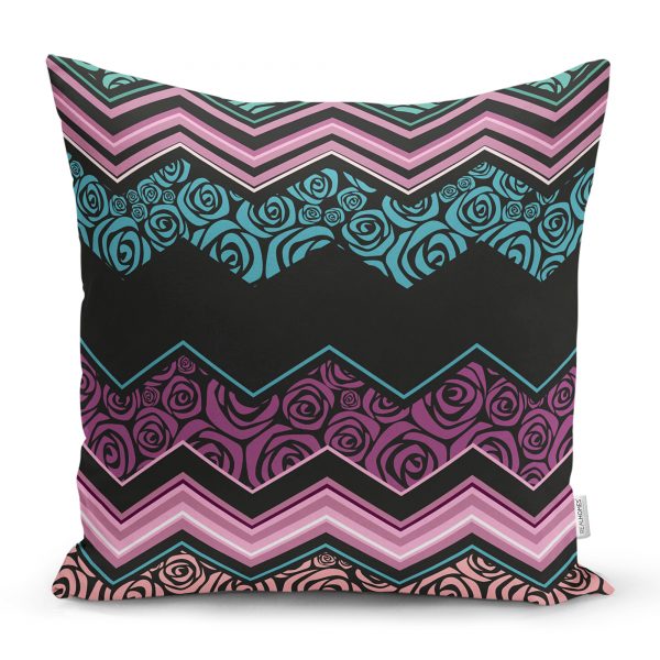 Pembe Zemin Soft Zigzag 4’lü Yastık Kırlent Kılıf Seti