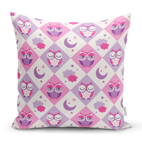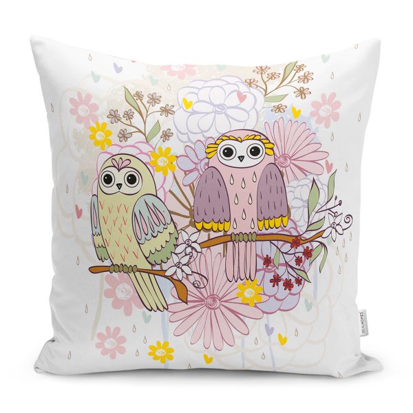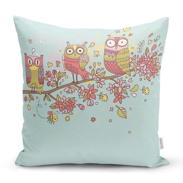 Baykuş Desenli Dijital Baskılı Dekoratif Yastık Kırlent Kılıfı