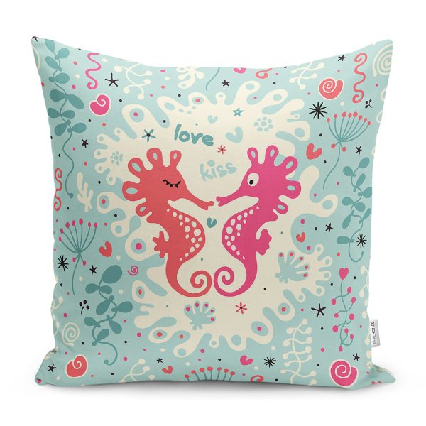 Deniz Atı Desenli Dijital Baskılı Dekoratif Yastık Kırlent Kılıfı