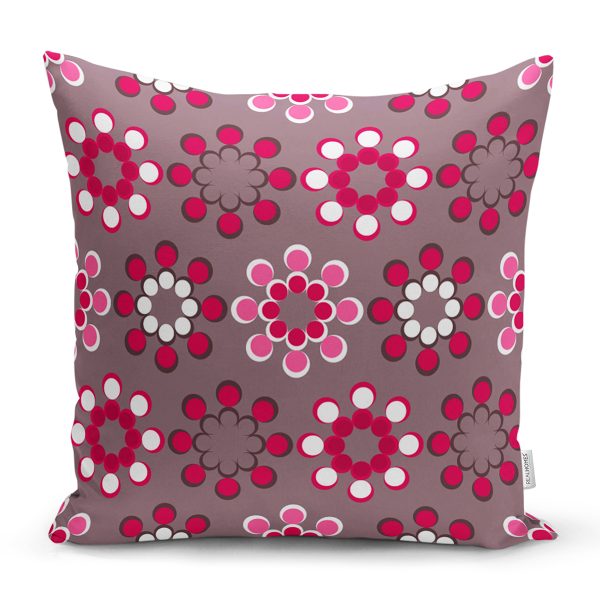 Füme Zeminli Çiçek Desenli Dijital Baskılı Modern Kırlent Kılıfı