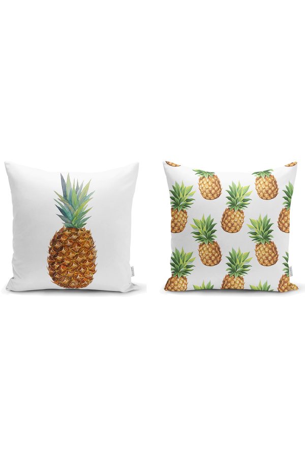 Beyaz Zemin Renkli Ananas 2’li Yastık Kırlent Kılıf Seti