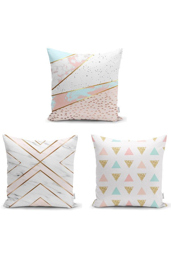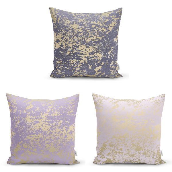 3’lü Gold Detaylı Mermer Desenli Modern Yastık Kırlent Kılıf Seti