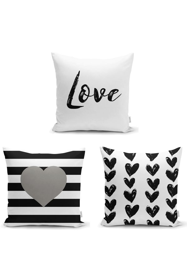 Modern Love Desenli 3’lü Yastık Kırlent Kılıf Seti
