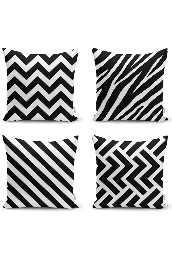Siyah Beyaz Geometrik 4’lü Yastık Kırlent Kılıf Seti