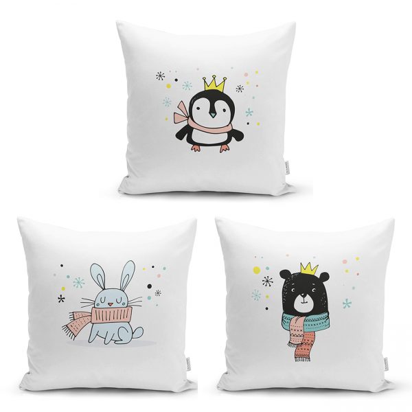 Sevimli Hayvanlar Özel Tasarımlı 3’Lü Kırlent Kılıf Seti