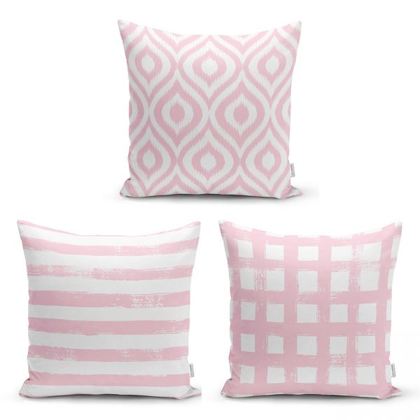 RealHomes Özel Tasarım Pembe İkat Desen Motifli Dijital Baskılı 3’Lü Modern Kırlent Kılıf Seti