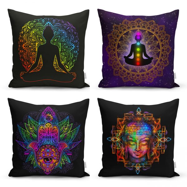 Uzak Doğu Yoga Tasarımlı Renkli 4’Lü Kırlent Kılıf Seti