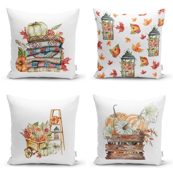4’lü Kabak & Meyveler Özel Tasarım Dijital Baskılı Modern Kırlent Kılıfı Seti