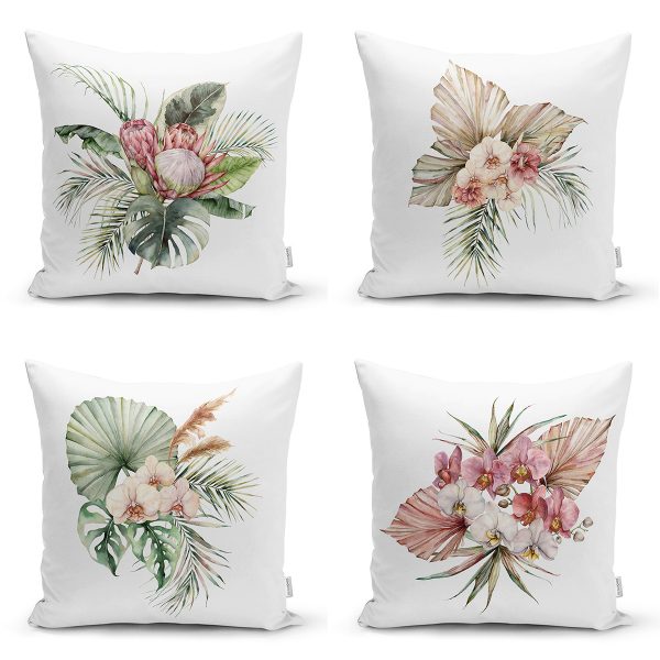 4’lü Egzotik Yaprak Tasarımlı Dijital Baskılı Modern Kırlent Kılıfı Seti