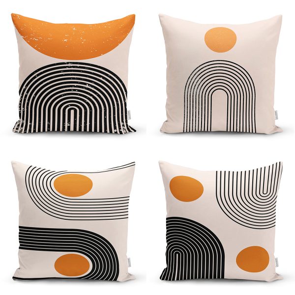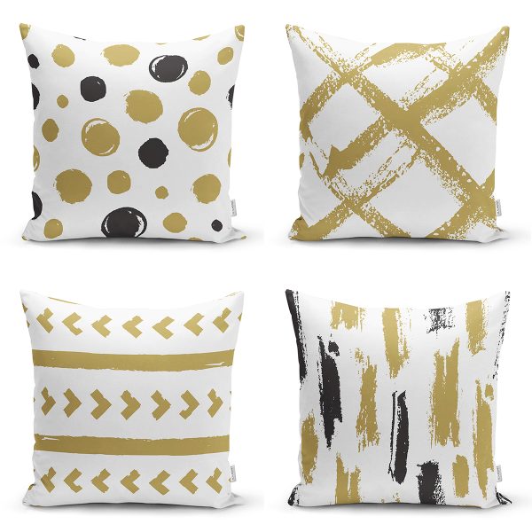 4’lü Puantiye ve Fırça Darbeli Konseptli Dekoratif Yastık Kırlent Kılıfı Seti
