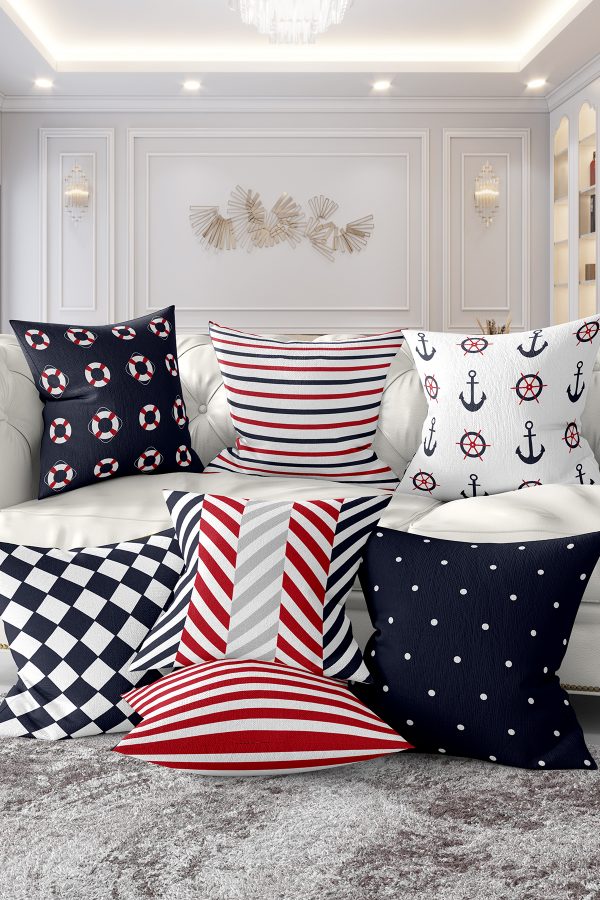7’li Soft Renkli Denizci Motifli Dijital Baskılı Kırlent Kılıfı Seti