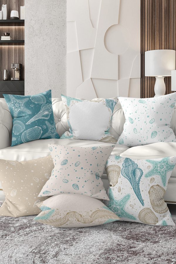 7’li Renkli Deniz Mahsülleri Özel Tasarımlı Dijital Baskılı Kırlent Kılıfı Seti