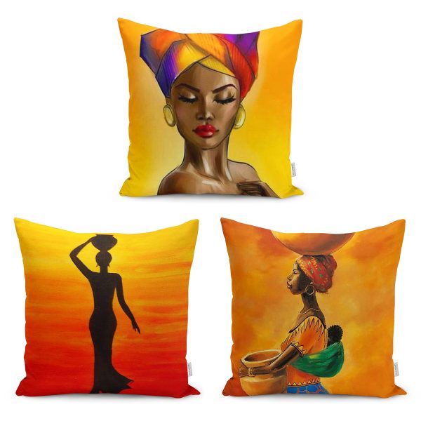 3’lü Etnik Afrika Kadın Tasarımlı Modern Yastık Kırlent Kılıf Seti