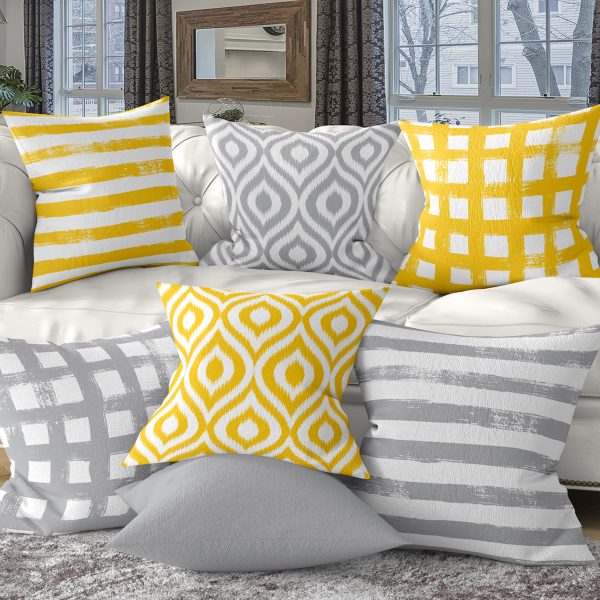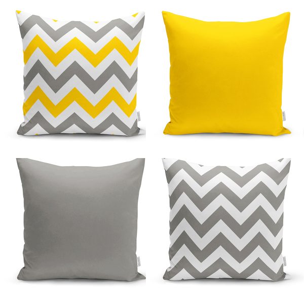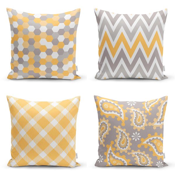 Realhomes Sarı ve Grinin Uyumlu 4’lü Kombin Yastık Kırlent Kılıfı