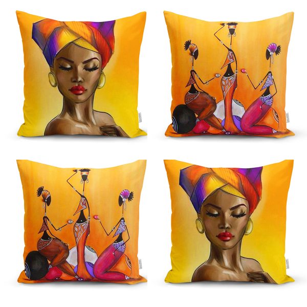 Realhomes Afrika Bayan Motifli 4’lü Modern Yastık Kılent Kılıfı